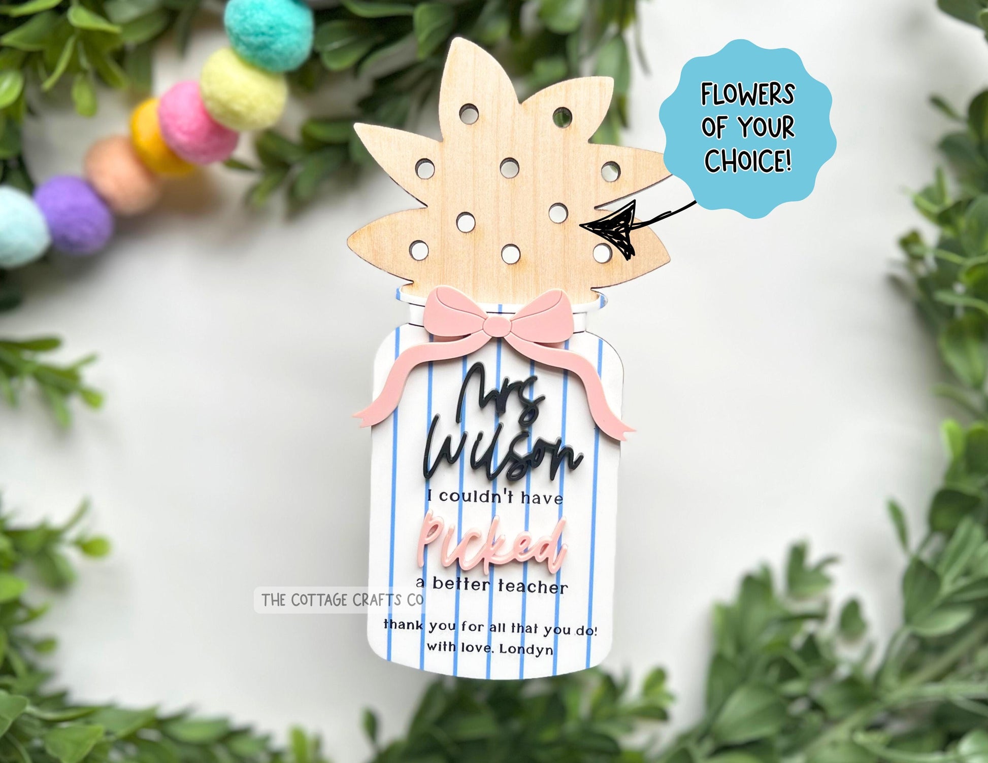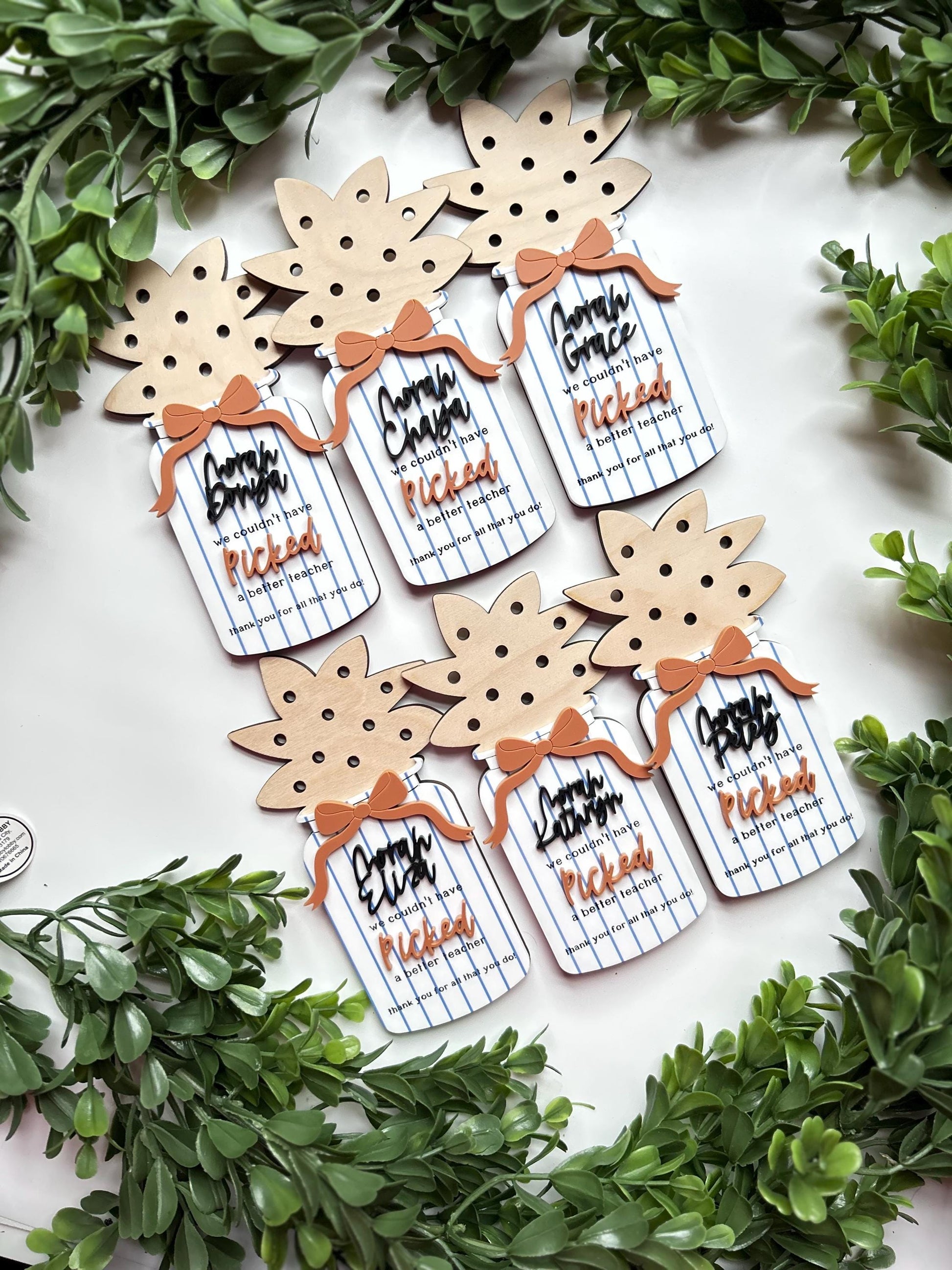 * Choice of bow color & font color ( word picked)